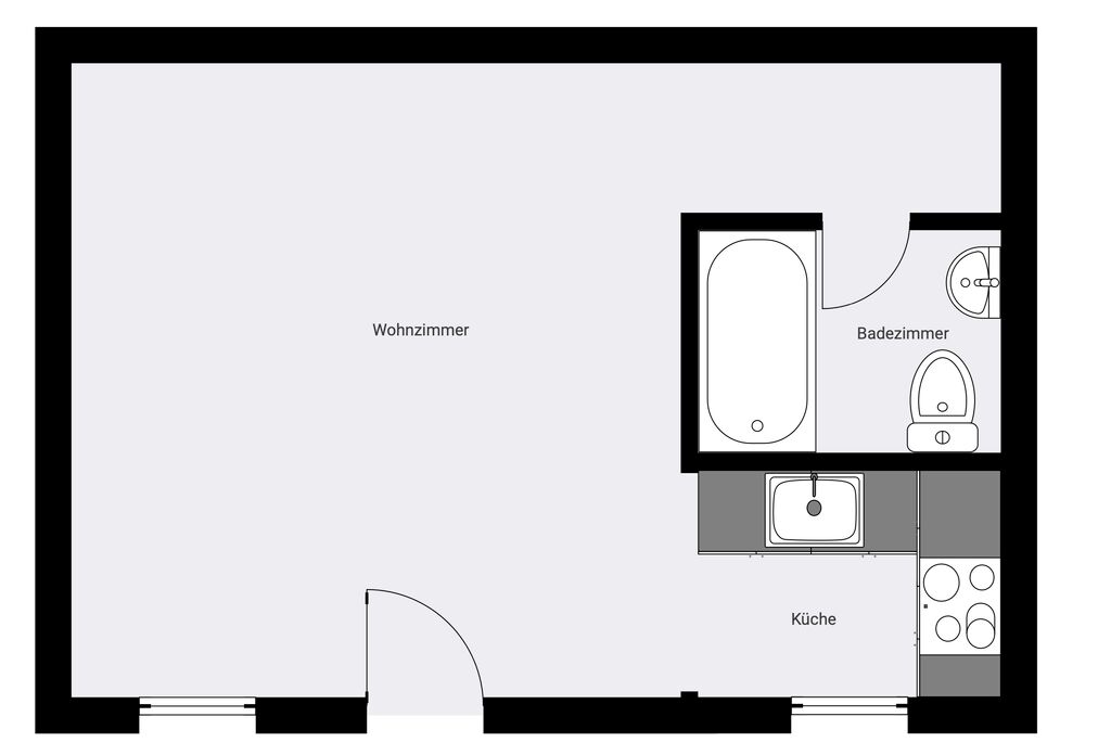 • Wohn-/Schlafzimmer mit Laminat ausgelegt - Küche mit Einbauküche