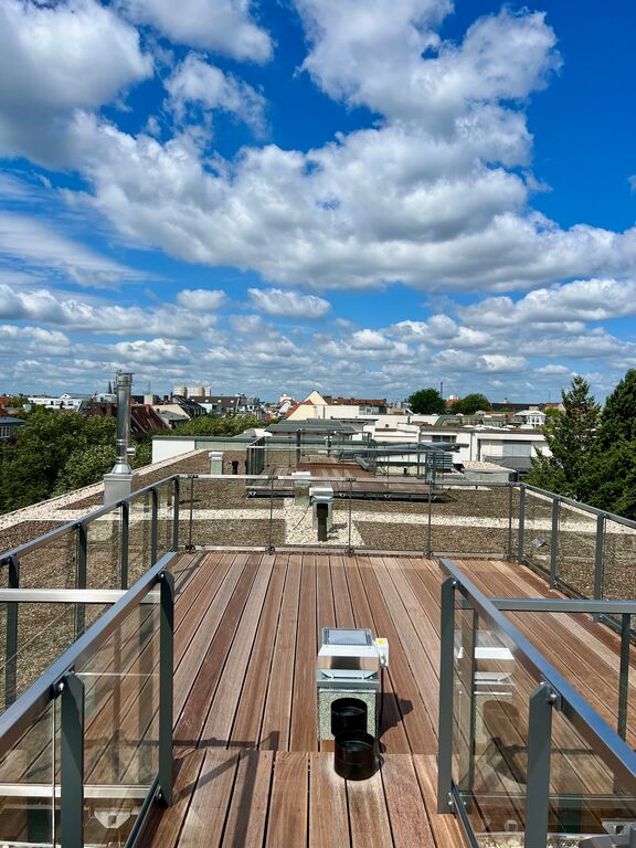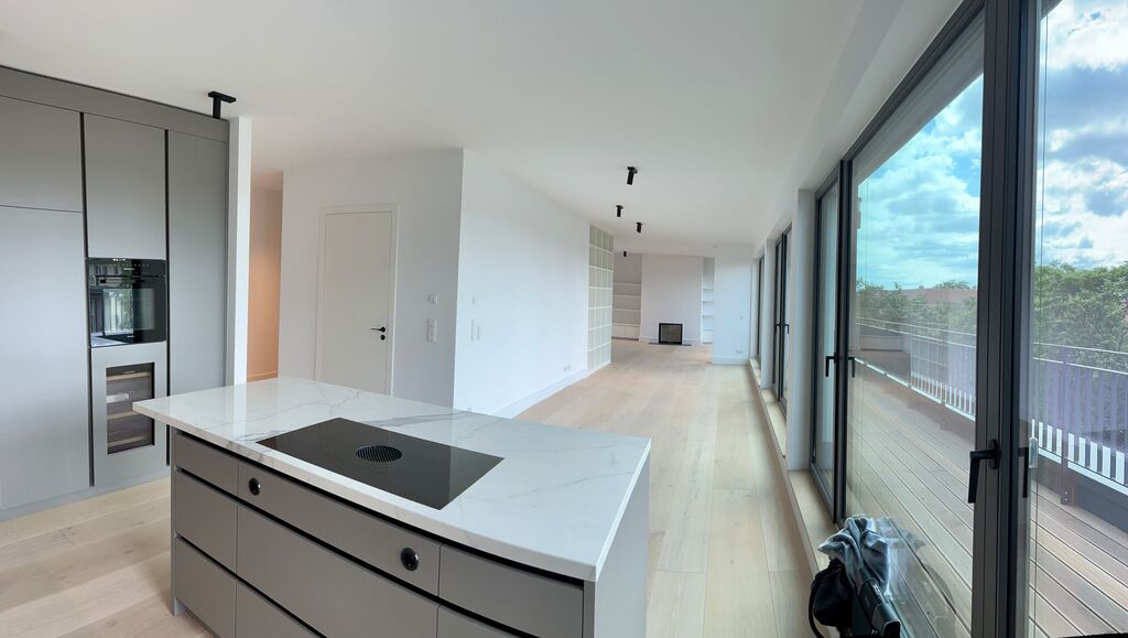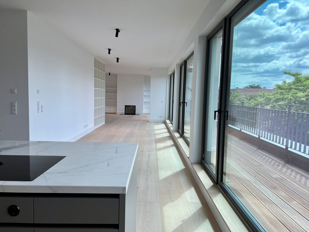 Dieses Penthaus bietet luxuriöses Wohnen mit einem atemberaubenden Blick über die Skyline von Berlin. Genießen Sie großzügige Süd- und Nord-Terrassen sowie eine weitläufige Dachterrasse, die zu entspannten Momenten im Freien einladen.