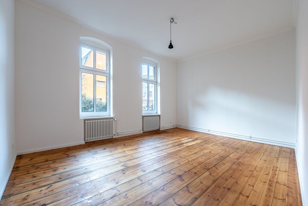 Die helle Wohnung mit Stuckaltbauelementen wurde 2021 komplett saniert und hat einen praktischen Grundriss. Man betritt die Wohnung durch eine großzügige Diele mit Platz für eine Garderobe. Von dort aus betritt man alle Räume separat - das lichtdurchflutete, nach Süden ausgerichtete Wohnzimmer mit riesigen Fenstern, das Bad und die gemütliche Küche, welche zum Hof ausgerichtet ist. Diese bietet auch Platz für einen kleinen Esstisch. Die Wohnung lässt sich gut als Single, als Paar oder auch als pied-a-terre in einem der schönsten Bezirke Berlins nutzen.