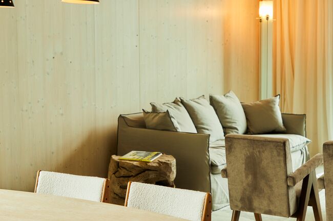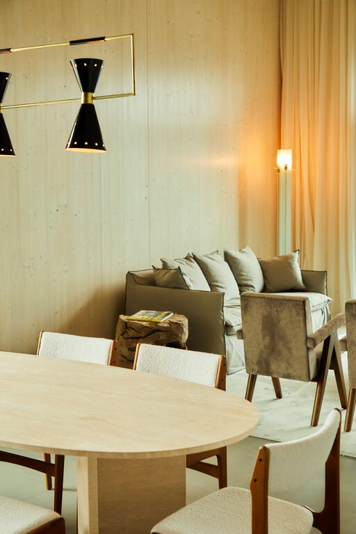 Im Herzen der pulsierenden Metropole, im sechsten Stock, entfaltet sich auf 113 Quadratmetern ein wahres Juwel urbanen Wohnens: ein repräsentatives Penthouse, das mit seinem modernen Aufbau und stilvollen Holzelementen sofort ins Auge sticht. Das Apartment öffnet seine Türen zu einem eleganten Wohn- und Essbereich, der nahtlos in eine hochmoderne, versteckte Küchenfront übergeht. Hier finden sich raffinierte Designelemente, wie eine goldfarbene Wand, die sich hinter einer Schranktür elegant verbirgt. Bodentiefe Fenster durchfluten den Raum mit natürlichem Licht und bieten einen atemberaubenden Blick über die Stadt. Ein großzügiges Schlafzimmer mit einem En-Suite Badezimmer verspricht Privatsphäre und Erholung. Ergänzt wird das Angebot durch eine zusätzliche Gästetoilette. Die durchgehende Fußbodenheizung sorgt für ein angenehmes Wohnklima, während die teilweise überdachte Dachterrasse zu geselligen Abenden oder entspannten Stunden im Freien einlädt. Das Interior-Konzept des Penthouses ist eine Hommage an die Ästhetik der 50er, 60er und 70er Jahre, geprägt von Vintage-Möbeln und skandinavischen Mid-Century Stühlen. Ein maßgefertigter Esstisch aus Travertin bildet das Herzstück des Wohnbereichs. Die erdigen, hellen Beige- und Grautöne, akzentuiert durch dunkles Flaschengrün und mattes Schwarz, schaffen eine Atmosphäre von eleganter Gelassenheit. Die Wände aus Holz kontrastieren gekonnt mit Elementen aus Beton, während leichte Leinenvorhänge mit patiniertem Leder und edlem Vintage-Bouclé harmonieren. Auszüge der Photoserie „Close Up“ von Martin Schöller verleihen dem Penthouse einen galeristischen Charakter – ein privates Kunstrefugium über den Dächern der Stadt. Für all jene, die einen anspruchsvollen Lebensstil pflegen und das Besondere suchen, bietet dieses Penthouse nicht nur ein Zuhause, sondern eine Oase der Inspiration und Eleganz inmitten der städtischen Dynamik. Die Miete inkludiert alle Nebenkosten, so wie Strom und Internet. Der Mietvertrag hat eine Mindestmietdauer von 24 Monaten. In der Miete sind alle Nebenkosten, wie Heizen, Strom und Internet, sowie die Möblierung enthalten. ____ENG____ In the heart of the bustling metropolis, on the sixth floor, unfolds on 113 square meters a true jewel of urban living: a representative penthouse, which immediately catches the eye with its modern structure and stylish wooden elements. The apartment opens its doors to an elegant living and dining area, seamlessly transitioning into a state-of-the-art, hidden kitchen front. Here, sophisticated design elements are found, such as a golden-colored wall that elegantly hides behind a cupboard door. Floor-to-ceiling windows flood the room with natural light and offer a breathtaking view of the city. A spacious bedroom with an en-suite bathroom promises privacy and relaxation. The offer is complemented by an additional guest toilet. The continuous underfloor heating ensures a pleasant living climate, while the partially covered roof terrace invites you to social evenings or relaxed hours outdoors. The interior concept of the penthouse is a homage to the aesthetics of the 50s, 60s, and 70s, characterized by vintage furniture and Scandinavian mid-century chairs. A custom-made travertine dining table forms the centerpiece of the living area. The earthy, light beige and gray tones, accentuated by dark bottle green and matte black, create an atmosphere of elegant serenity. The wooden walls contrast skillfully with elements of concrete, while light linen curtains harmonize with patinated leather and noble vintage bouclé. Excerpts from the photo series "Close Up" by Martin Schöller give the penthouse a gallery-like character – a private art refuge above the city's rooftops. For all those who cultivate a sophisticated lifestyle and seek the extraordinary, this penthouse offers not just a home, but an oasis of inspiration and elegance amidst urban dynamics. The rent includes all ancillary costs, such as electricity and internet. The rental contract has a minimum rental period of 24 months. The rent includes all ancillary costs, such as heating, electricity, and internet, as well as the furnishings.