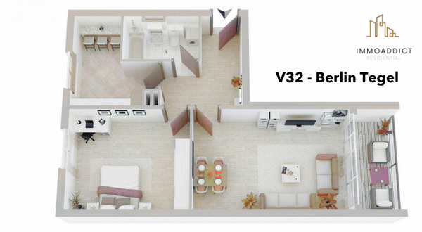 Die Wohnung befindet sich in Berlin im schönen Stadtteil Tegel, der sich durch seine ruhige und grüne Umgebung auszeichnet. In unmittelbarer Nähe der Immobilie befinden sich die Hallen am Borsigturm, Alt-Tegel, der Tegeler See und der Tegeler Forst, die zu ausgiebigen Spaziergängen, Fahrradtouren oder Bootsausflügen einladen.
