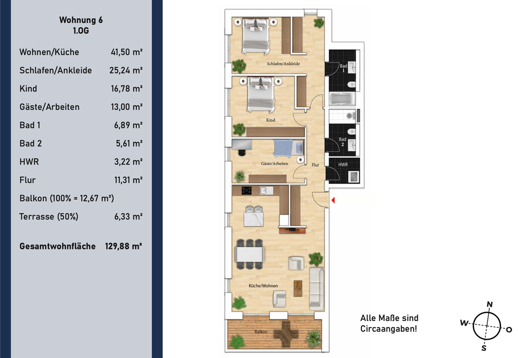 1 Haus mit 4 Etagen 9 Wohnungen 9 Tiefgaragenstellplätze (nicht im KP enthalten!) Größen von ca. 78 bis 194 m² 2-5 Zimmer pro Wohnung Gesamtwohnfläche von ca. 1.084 m² Erdgeschosswohnungen mit eigenen Gärten (ca. 125-290 m²) Große Balkone und Terrassen für Bewohner auf den anderen Etagen Gehobene Ausstattung 25 Fahrradstellplätze Ladestation für E-Bikes Wallboxen für E-Autos Baubeginn 2023 Fertigstellung Q2 2025 KfW-Effizienzhaus: 40 EE zertifiziert Baubegleitendes Qualitätscontrolling: TÜV Süd
