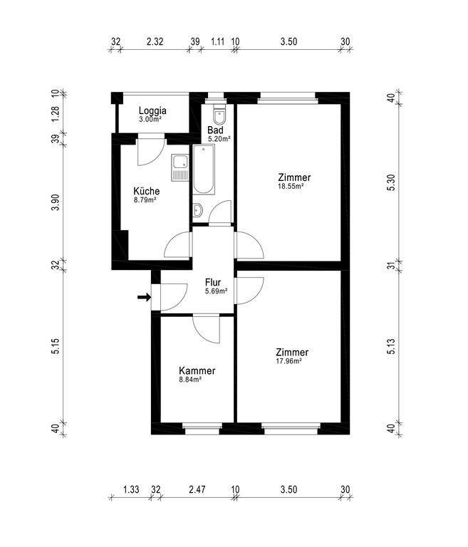 Die Wohnung ist gut geschnitten und bietet durch die halben Zimmer zusätzliche Flexibilität, beispielsweise für ein Arbeitszimmer oder eine kleine Hobbyecke.