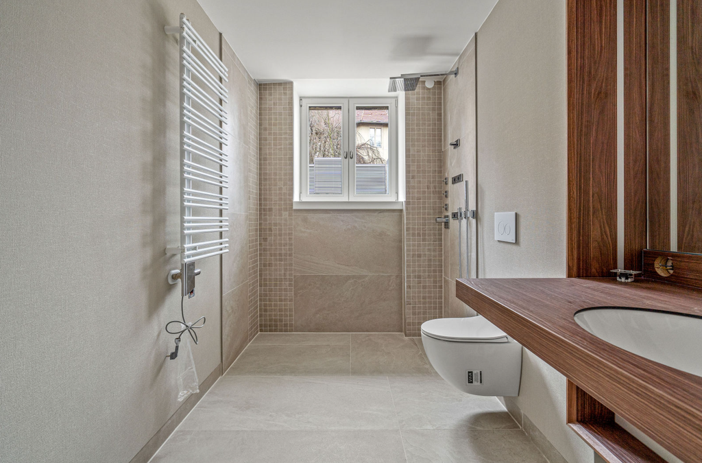 • Verwendung renommierter Markenprodukte wie Geberit, Zehnder, Dornbracht, Villeroy & Boch, Joka Calgary Parkett Eiche und Hörmann Türen.