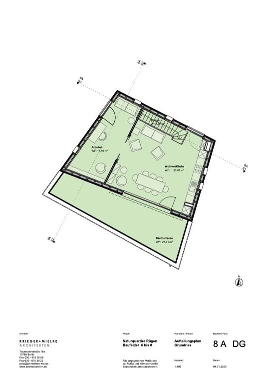 Die großzügige 5-Zimmer-Wohnung mit ca. 153m² Wohnfläche verteilt sich auf das Ober-und Dachgeschoss mit großer südlich ausgerichteter Terrasse, die einen herrlichen Blick auf die Ostsee und die Naturlandschaft der Südküste von Göhren ermöglicht. Während sich im Obergeschoss drei Zimmer, die zum Arbeiten und Schlafen genutzt werden liegen, ebenso wie zwei Badezimmer, befindet sich der offene Wohn- und Essbereich mit einem weiteren Studio im Dachgeschoss mit bodentiefen Fensterfronten. Optimale Lichtverhältnisse, ökologisches und energieeffizientes Wohnen in durchdachten Architektenhäusern bieten die beste Voraussetzung für einen Wohnsitz, der Arbeiten und Leben in der Natur am Meer möglich macht. Die Stadthäuser sind ein Bestandteil des Naturquartier Rügen in Göhren, südöstlich gelegen auf der Halbinsel Mönchgut. In enger Zusammenarbeit mit ausgewählten Architekten legen die Projektentwickler den Fokus auf ökologische und nachhaltige Bauweise, auf reduzierte und klare Architektur- und Formensprache und auf gemeinschaftliches Wohnen auf einem der letzten idyllisch-naturbelassenen Grundstücke.