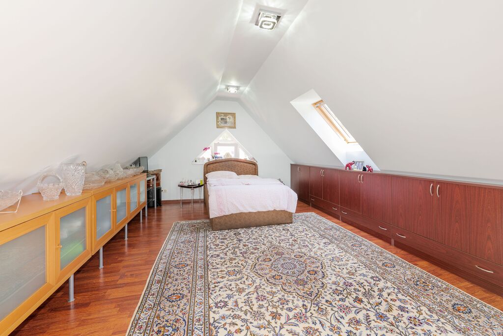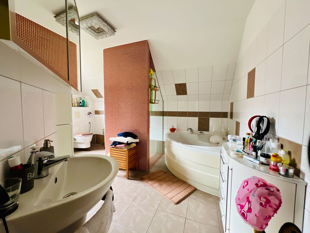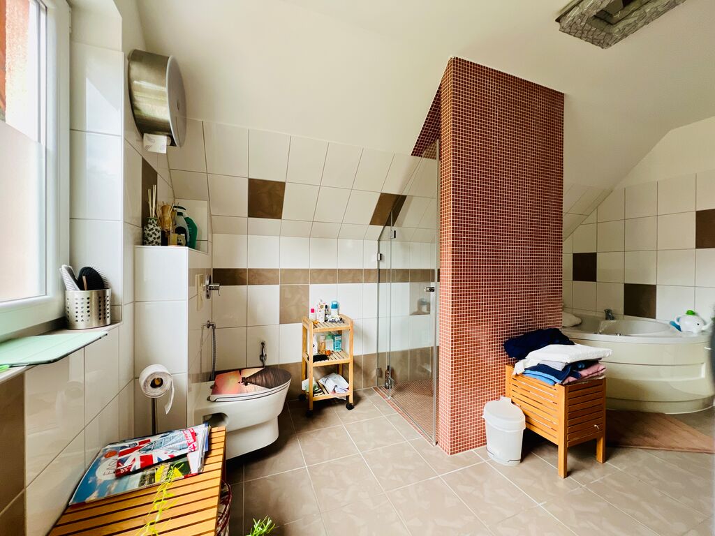 Die Ausstattung wurde zuletzt 2016 umfassend modernisiert und präsentiert sich auf einem gehobenen Niveau. Im Zuge des Umbaus wurde der Spitzboden ausgebaut und dient nun als zusätzliches, geräumiges Schlafzimmer. Der Kellerbereich wurde aufwendig gestaltet und verfügt über ein großes Badezimmer sowie zwei weitere Zimmer, die dank der integrierten Fußbodenheizung problemlos für Wohnzwecke genutzt werden.