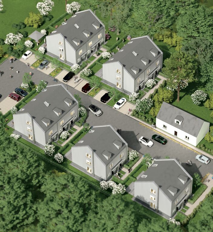 Das hier angebotene Reihenmittelhaus bietet sechs Zimmer auf einer Wohnfläche von ca. 152 m². Es können insgesamt zwei Stellplätze zusätzlich erworben werden und eine PV-Anlage inkl. Speicher ist auf jedem Haus bereits installiert. Die Lage des Grundstücks mit ihren 13 Einheiten besticht durch die Nähe zum Waldrand, mitten in Bergholz-Rehbrücke. Das Grundstück des RMH ist ca. 108 m² groß und bietet eine schöne Terrasse. Im Erdgeschoss befinden sich das Wohn- und Esszimmer des Hauses, ein Gäste-WC und die Küche. Außerdem hat man Zugang zu der nach Süden ausgerichteten Terrasse und dem Garten. Im 1. Obergeschoss befinden sich zwei Schlafzimmer und das Master-Badezimmer mit Badewanne. Im Dachgeschoss finden sich drei weitere Zimmer (änderbar auf zwei) und ein Badezimmer wo auf Wunsch auch ein Wellnessbereich mit Sauna geschaffen werden kann. Es besteht ebenfalls die Möglichkeit gegen Aufpreis einen Kamin zu installieren. Eine PV-Anlage inkl. Speicher kann hier optional installiert werden. Zusätzlich können zwei Außenstellplätze für jeweils 10.000 Euro dazu erworben werden. Alle Bilder sind aus dem Musterhaus aufgenommen oder unverbindliche Visualisierungen und können vom Originalbau abweichen.
