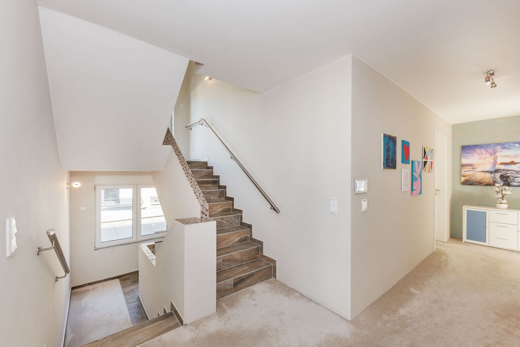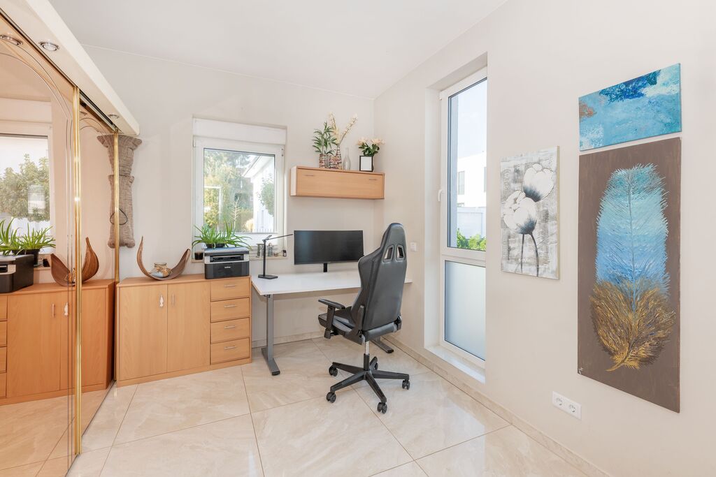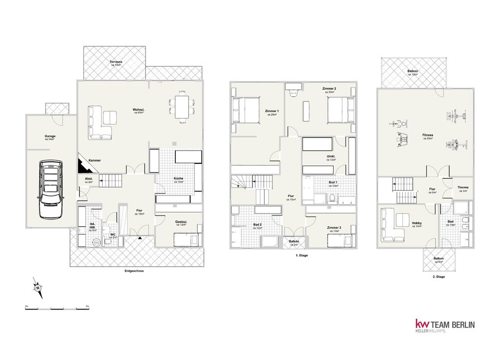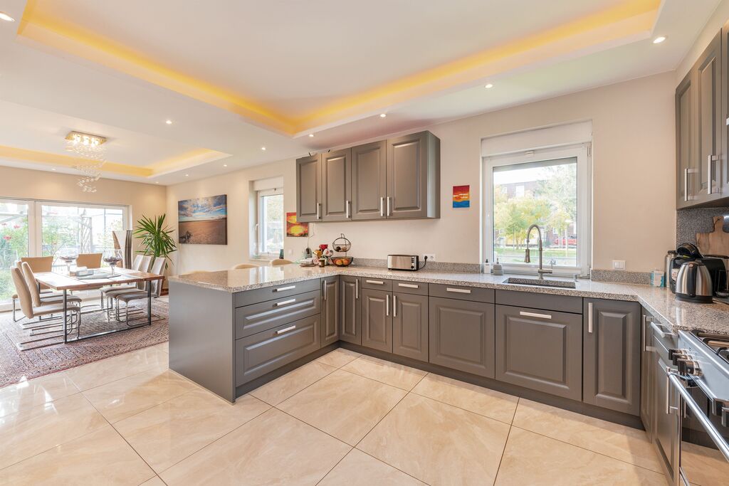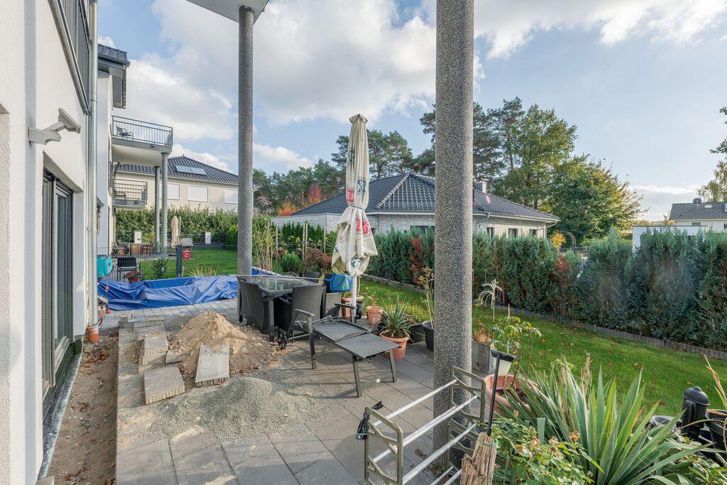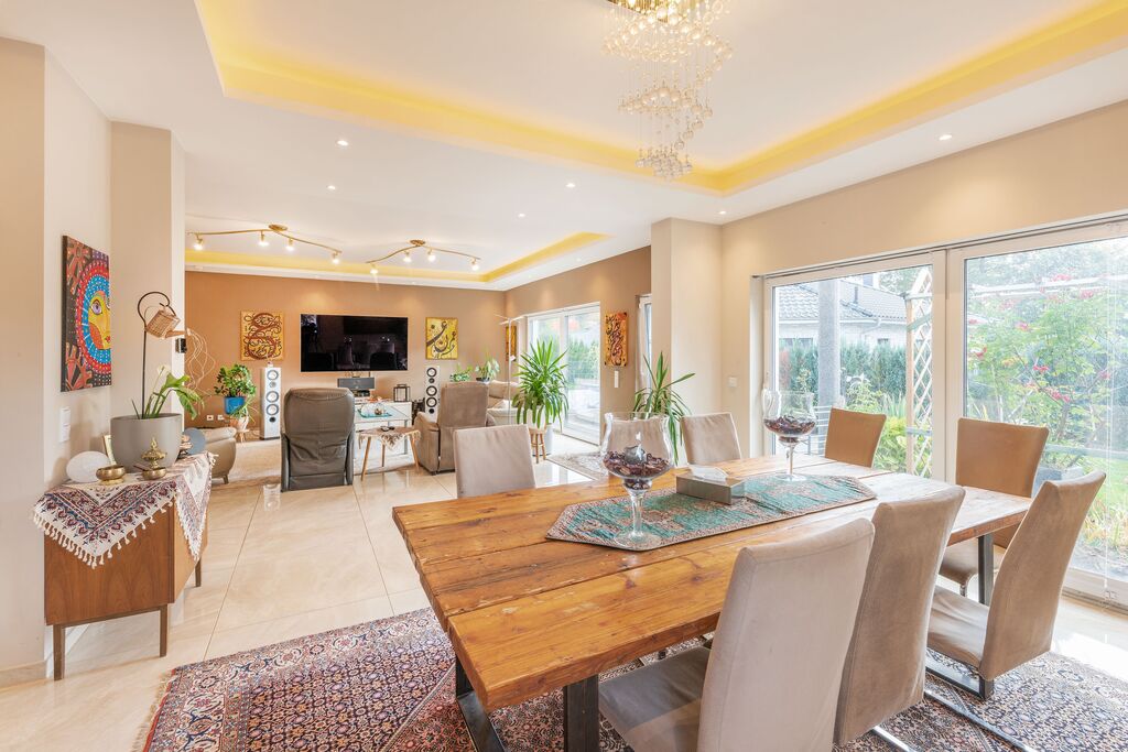 Zum Verkauf steht ein neuwertiges schönes Einfamilienhaus in Potsdam OT Groß Glienicke mit insgesamt 316 m² Wohnfläche und einem Grundstück von 460 m². Das Haus wurde im Jahr 2018 fertiggestellt und befindet sich in einem sehr guten Zustand. Im Erdgeschoss befindet sich in Südlage der großzügige Wohn- und Essbereich mit Kamin sowie einer offenen Küche. Durch bodentiefe Fenster gelangt viel Tageslicht in den Raum und schafft eine helle und freundliche Atmosphäre. Von hier aus hat man direkten Zugang zur Terrasse und dem Garten mit Pool. Die hochwertige Einbauküche ist im Kaufpreis inklusive. Des Weiteren gibt es ein separates Arbeitszimmer/Gästezimmer sowie ein Gäste-WC. Die daneben liegende Garage mit extra Handwerksbereich ist bequem vom Flur aus zu erreichen. Im Obergeschoss befinden sich das Elternschlafzimmer mit begehbarem Kleiderschrank und eigenem Badezimmer, zwei weitere Schlafzimmer (eins mit begehbarem Kleiderschrank) sowie ein weiteres Badezimmer. Die Badezimmer sind modern ausgestattet. Im Dachgeschoss befindet sich ein ca. 60qm großes Zimmer mit einer Deckenhöhe von 4,5m, das als Schlafzimmer/Büro oder Atelier genutzt werden kann. Der von hier aus erreichbare ca. 10qm große Balkon bietet einen atemberaubenden Blick über den Villenpark Potsdam. Auch hier gibt es ein weiteres Schlafzimmer sowie ein Badezimmer mit Dusche. Die Heizungsanlage mit darüberliegendem Stauraum befindet sich ebenfalls auf dieser Etage. Das Haus verfügt über eine moderne Gasheizung, eine Zentralstaubsaugeranlage und ist mit einer Fußbodenheizung ausgestattet. Die Böden sind mit hochwertigen Fliesen, Teppichböden und Parkett verlegt. Im Garten gibt es eine Terrasse, auf der man gemütliche Grillabende verbringen kann. Der Garten ist pflegeleicht angelegt und bietet genügend Platz zum Spielen und Entspannen und baden. Neben dem Poolbereich befindet sich eine Überdachung für Kaminholz oder Grillplatz. Das Einfamilienhaus liegt am Wendehammer ohne Durchgangsverkehr in einer ruhigen Wohngegend von Potsdam und bietet eine gute Anbindung an öffentliche Verkehrsmittel. Einkaufsmöglichkeiten, Schulen und Kindergärten befinden sich in der Nähe. Insgesamt bietet dieses Haus viel Platz und Komfort für eine Familie oder auch für Paare, die gerne großzügig wohnen möchten. Überzeugen Sie sich selbst bei einer Besichtigung von diesem traumhaften Einfamilienhaus.